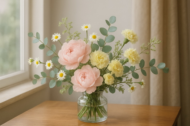 • 康乃馨(Carnation):选用淡黄或鹅黄色调,营造阳光感,亦能提升整体结构感。
